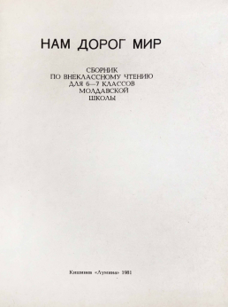 Книга "Нам дорог мир" Сборник по внеклассному чтению для 6-7 классов молдавской школы