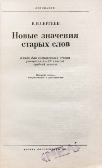 Книга "Новые значения старых слов" Книга для внеклассного чтения для 8-10 класса