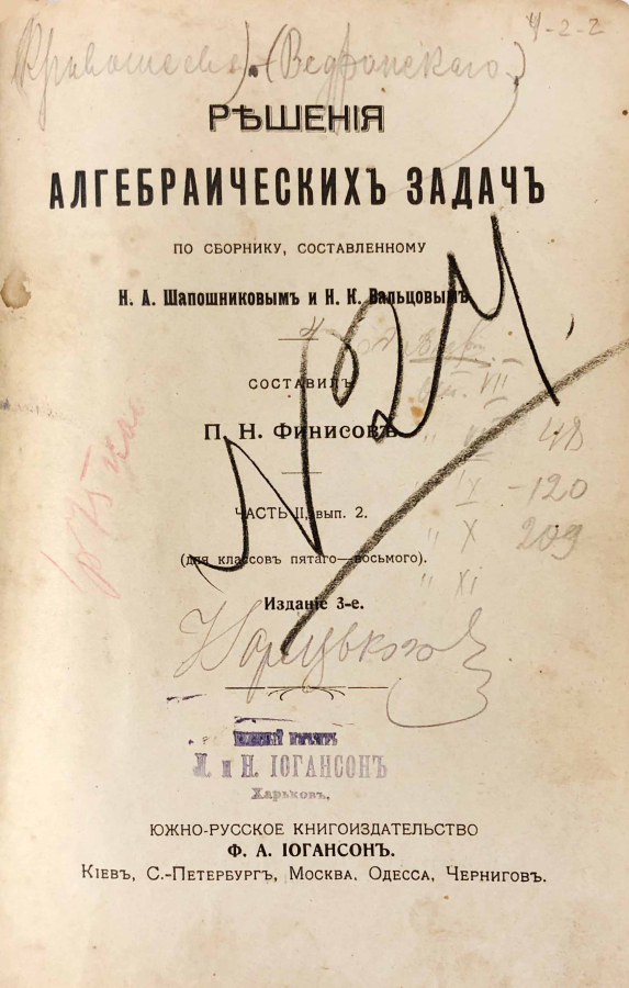 Из введения: Задачи, помещенные в «Общем отделе» сборника, очень интересны, разнообразны и представляют собой прекрасные образцы задач, которые в настоящее время служат темами при выпускных экзаменах в средней школе, — я привёл самые подробные их решения, считая в этом случае краткость совершенно неуместной.