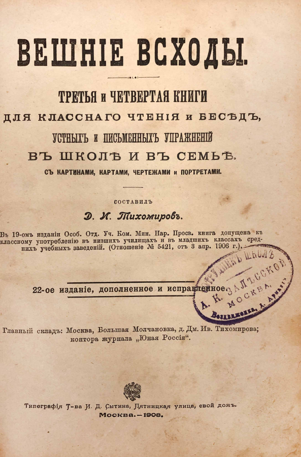 Книга для классного чтения и бесед, устных и письменных упражнений в школе, и в семье. Книга содержит множество текстов на разные темы с вопросами после прочтения и церковно славянские тексты. На каждой странице издания — иллюстрация, отражающая дух эпохи.
