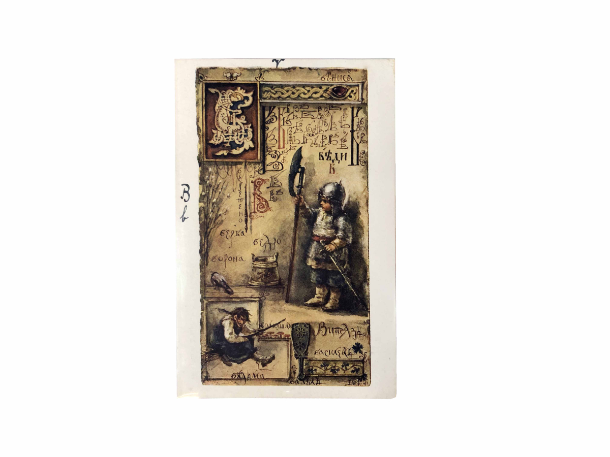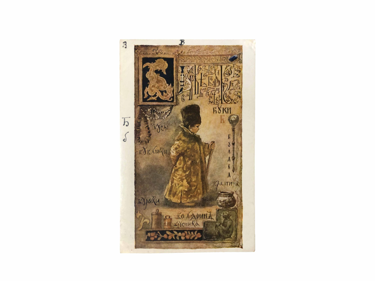 Изданная в 1913-1914 годах в Париже, «Азбука» на много лет стала эталоном для детской иллюстрации. Серия задумывалась скорее не как материал для обучения грамоте, а как красочная историческая энциклопедия. Написание буквиц, предметы, подобранные для каждой буквы, и костюм персонажа соответствуют духу допетровской эпохи времен царя Алексея Михайловича. Большая часть работ Елизаветы Бём посвящена детям, и в Азбуке они стали главными действующими лицами.