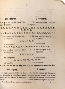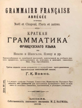 Краткая грамматика французского языка приспособлена к программе, которая преподается в мужских гимназиях Министерства народного просвещения.