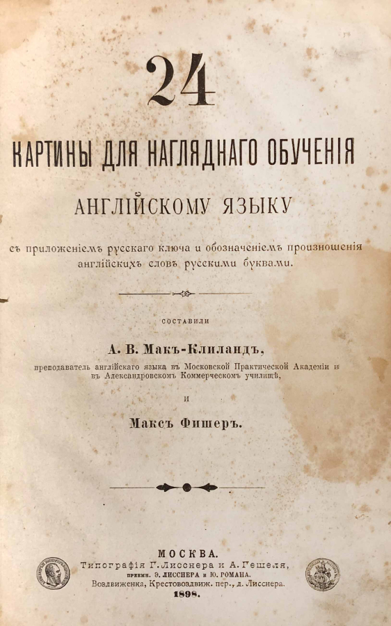 Учебник составили А. В. Мак-Клиланд, преподаватель английского языка в Московской Практической Академии и в Александровском Коммерческом училище, и Макс Фишер.