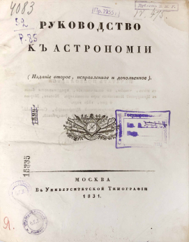 Книга "Руководство к астрономии и Обозрение преподавания астрономии в академическом 1832-1833 г."