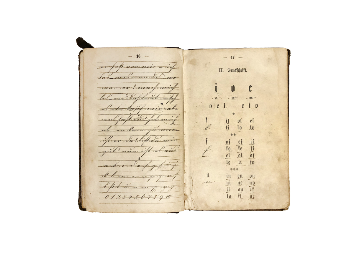 Данный букварь является переизданием учебного пособия, выпущенного в 1884 году для протестантских школ. Основное внимание в протестантском образовании уделяется изучению Библии и познанию библейской истории. Система образования и распространение грамотности в немецких землях получили мощный импульс благодаря Реформации, инициированной Мартином Лютером (1483–1546), основателем протестантизма. Его идеи о всеобщей доступности священных текстов привели к переводу Библии на немецкий язык и активному распространению грамотности среди всех слоев общества, включая простых людей.