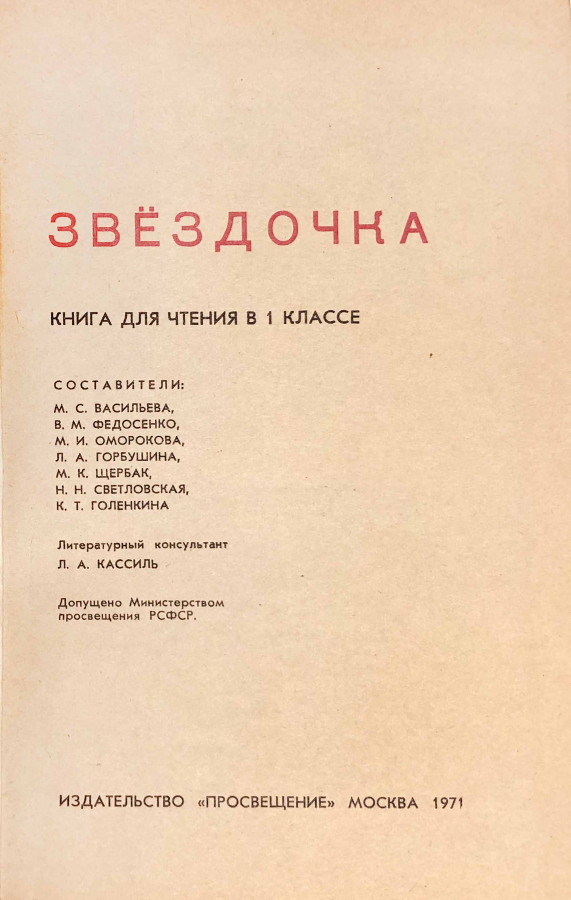 Книга "Звёздочка" Книга для чтения в 1 классе