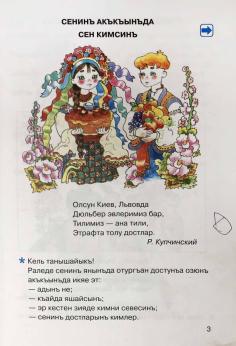 Учебник написан на Къырымтатар тили (самоназвание крымско-татарского языка). Распространён в Крыму, Румынии, Молдавии, Болгарии, Грузии, Азербайджане, Узбекистане, Турции и других странах. В настоящее время крымскотатарская письменность функционирует на двух алфавитах — кириллице и латинице.