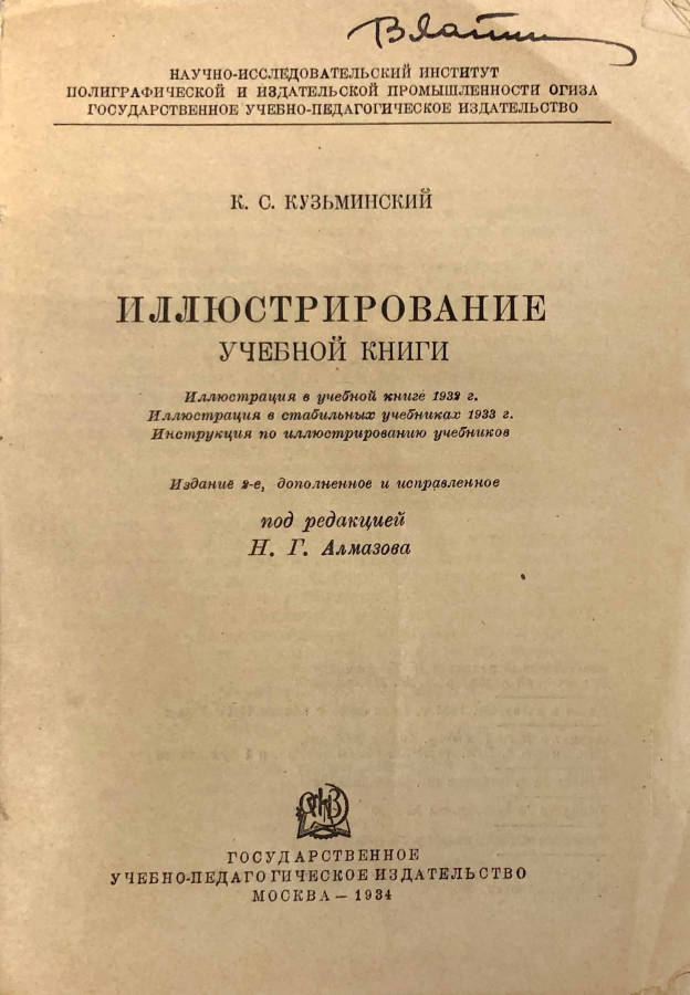 Создание стабильного учебника вызывает необходимость пересмотра не только качества текста, но и качества сопровождающего его иллюстративного материала и внешнего оформления издания. Иллюстрации как в детской книге вообще, так и в особенности в учебниках, вышедших до 1933 г., были неудовлетворительны как с художественной, так и с технико-полиграфической стороны. Эта книга была первой попыткой систематизировать имеющийся по этому вопросу материал.