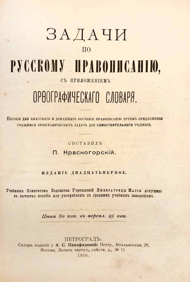 Книга "Задачи по русскому правописанию" с приложением орфографического словаря