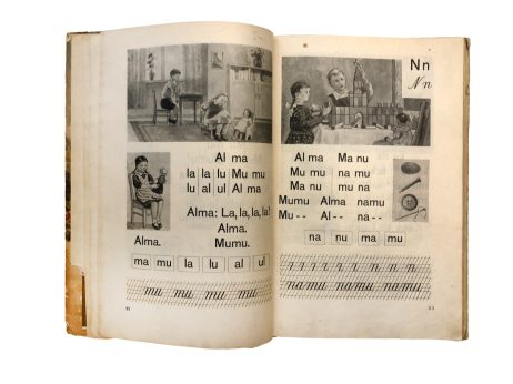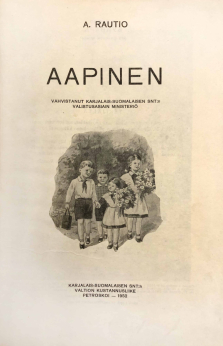 Книга представляет собой букварь на финском языке, предназначенный для начального изучения алфавита и основ чтения. Финский язык активно изучался и преподавался в Карелии в советский период, особенно в 1930-е годы в рамках коренизации и в послевоенное время, сохраняя значимость как язык соседней Финляндии и часть культурного наследия.