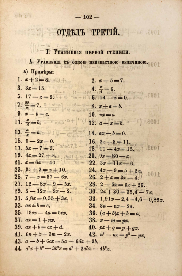 Учебник является руководством, направленным на освоение курса алгебры в средних учебных заведениях. Он начинается с составления простых алгебраических выражений и изучения основных понятий предмета. Учебник помогает ученикам плавно перейти от арифметики к алгебре, осваивая новую терминологию и приобретая базовые навыки алгебраического мышления.