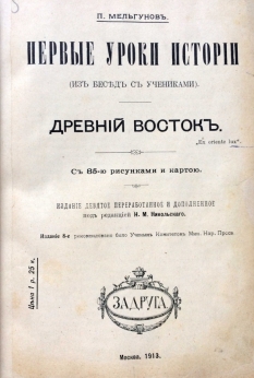 Пётр Павлович Мельгунов — известный ботаник и историк, педагог. Окончил курс в Московском университете, дружил с В. О. Ключевским, преподавал историю в Московском Николаевском институте и гимназии Ф. И. Креймана. Стал знаменит благодаря своему учебнику «Первые уроки истории», неоднократно переиздававшегося и вызывавшему восхищение лучших умов России. В издании представлен ряд статей П. Мельгунова по общеисторическим вопросам и проблемам историографии древнего общества. Под ред. Н. М. Никольского. Книга представляет историческую и культурную ценность!
