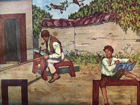 Книга, по которой дети могли учиться читать и писать. Особенность учебника в том, что он отчасти составлен из текстов разных русских букварей. Некоторые тексты взяты из букваря Вахтерова. Книга содержит рисунки, цветные и черно-белые и множество разных текстов. Книга представляет историческую и культурную ценность!