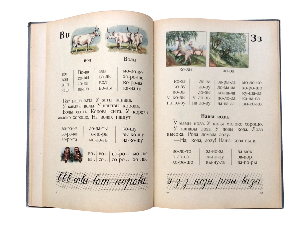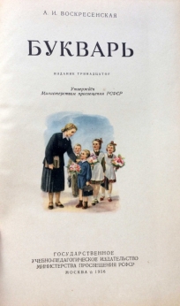 Букварь педагога и методиста по русскому языку А. И. Воскресенской. Букварь — это книга, которая первая давала советским детям образование, любовь к Родине, близким. Прекрасное пособие для обучения чтению ребёнка до школы. Очень хорошо построена методика порядка изучения букв, ребенок легко подключается к изучению чтения. Александра Ильинична Воскресенская — советский педагог и методист по русскому языку в начальной школе, автор букварей для сельских школьников. Член-корреспондент Академии педагогических наук РСФСР (1950), заслуженный учитель школы РСФСР.