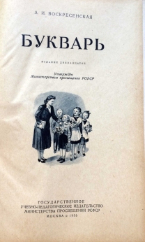 Букварь педагога и методиста по русскому языку А. И. Воскресенской. Букварь — это книга, которая первая давала советским детям образование, любовь к Родине, близким. Прекрасное пособие для обучения чтению ребёнка до школы. Очень хорошо построена методика порядка изучения букв, ребенок легко подключается к изучению чтения. Александра Ильинична Воскресенская — советский педагог и методист по русскому языку в начальной школе, автор букварей для сельских школьников. Член-корреспондент Академии педагогических наук РСФСР (1950), заслуженный учитель школы РСФСР.