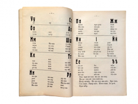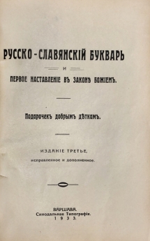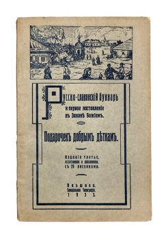 Книга «Русско-славянский букварь и первое наставление в законе Божьем» предназначена для обучения чтению и письму в школе и дома. В букварь входят следующие разделы: азбука, упражнения в чтении и письме, в качестве практического пособия — повседневные молитвы, Ветхий завет, Новый завет, главы, посвященные православной вере и церковной истории.. Редкое издание русской эмиграции!