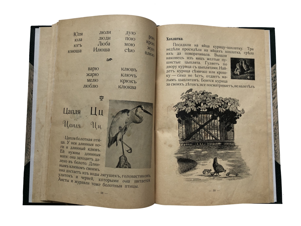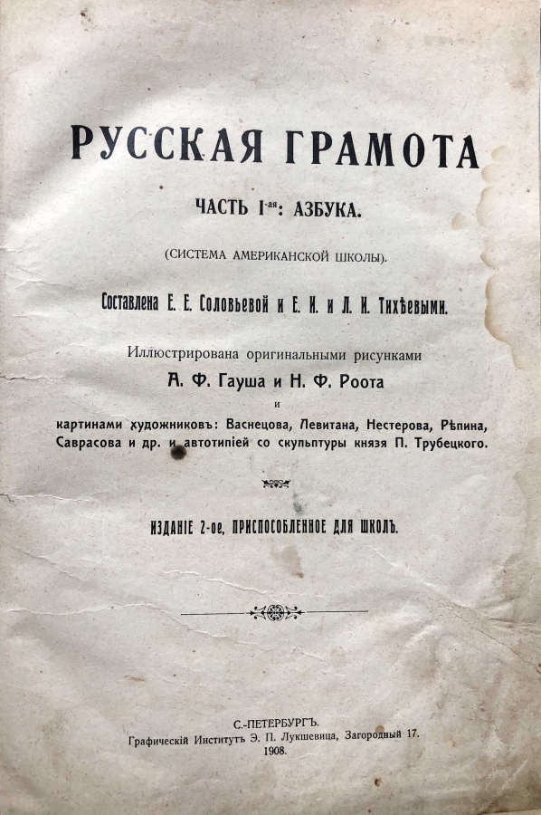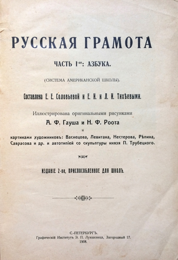 Иллюстрирована оригинальными рисунками А. Ф. Гауша и Н. Ф. Роота и картинами художников: В. Васнецова, И. Левитана, М. Нестерова, И. Репина, А. Саврасова, и автотипией скульптуры князя П. Трубецкого. Главная задача этой азбуки — обучить ребёнка грамоте и перейти к связному самостоятельному чтению. Авторы пытались придать книге вид, способствующий наилучшему усвоению грамоты. Издание второе, приспособленное для школ. . Книга представляет историческую и культурную ценность!