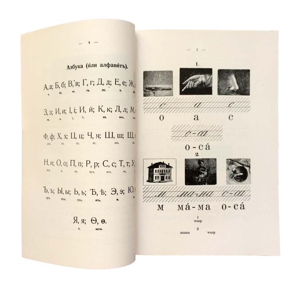 Изданы русскими эмигрантами в Америке, с любовью к России и к своим детям, живущим вдали от родины. В основу содержания заложена русская народная мудрость, показан русский быт 19-начала 20 веков. Букварь содержит алфавит, азбуку, прописи, чтение по слогам, много коротких рассказов и познавательных статей, стишков, упражнения и задания — почти все сопровождается иллюстрациями. Алфавит с переводом на английский язык, некоторые страницы тоже имеют перевод на английский язык — внизу мелким шрифтом. Книга представляет историческую и культурную ценность! Редкое издание русской эмиграции!