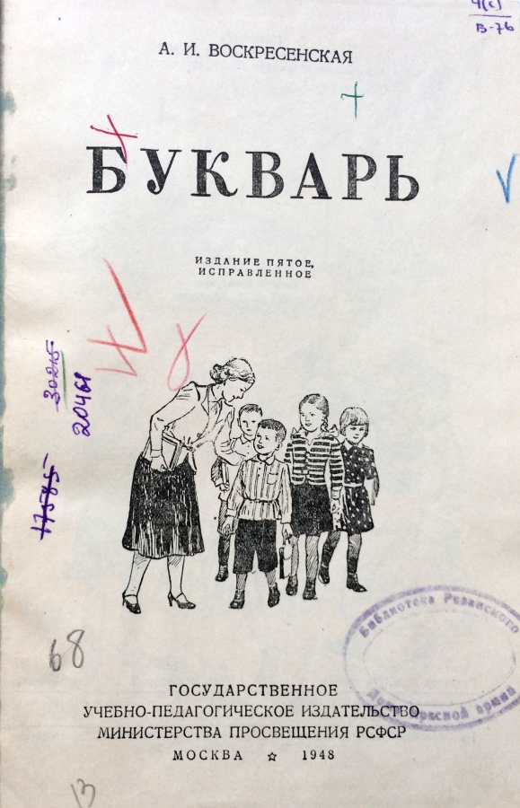 Знаменитый "Сталинский Букварь" педагога и методиста по русскому языку А. И. Воскресенской. Букварь — это книга, которая первая давала советским детям образование, любовь к Родине, близким. Прекрасное пособие для обучения чтению ребёнка до школы. Очень хорошо построена методика порядка изучения букв, ребенок легко подключается к изучению чтения. Александра Ильинична Воскресенская — советский педагог и методист по русскому языку в начальной школе, автор букварей для сельских школьников. Член-корреспондент Академии педагогических наук РСФСР (1950), заслуженный учитель школы РСФСР.
