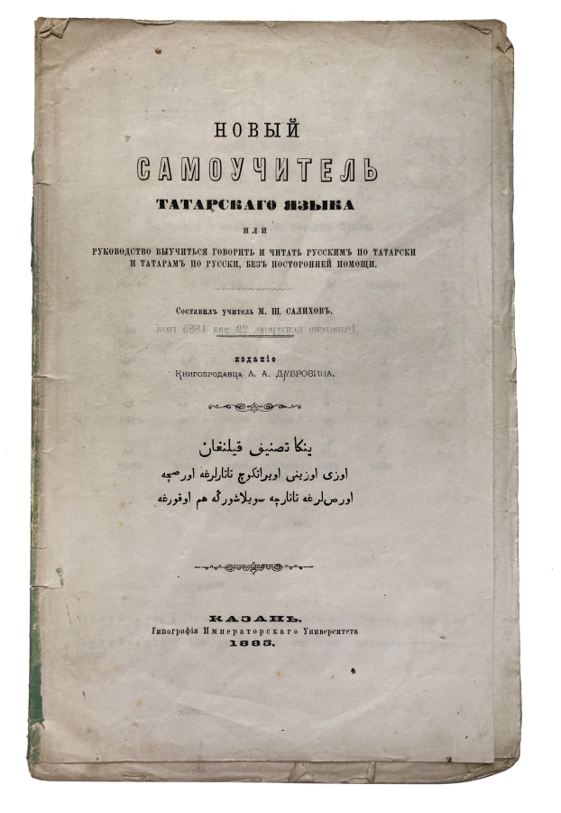 Новый самоучитель татарского языка или руководство выучиться говорить и читать русским по-татарски и татарам по-русски, без посторонней помощи. Книга издана в типографии Казанского императорского университета.