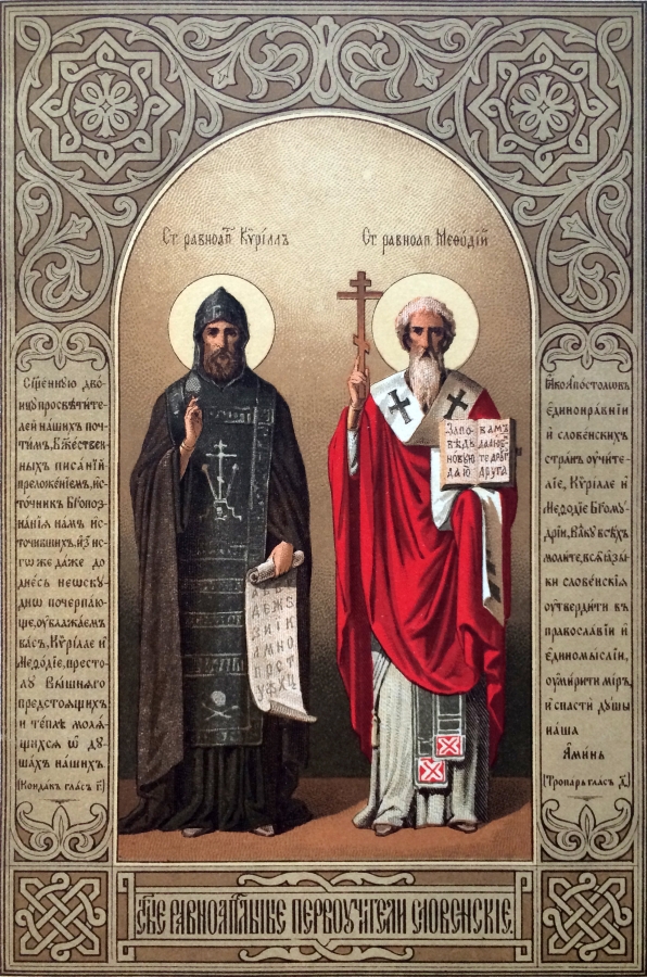 Твёрдый издательский переплёт. Стандартный формат. С изображением в красках первых «учителей словенских»— святых Кирилла и Мефодия.