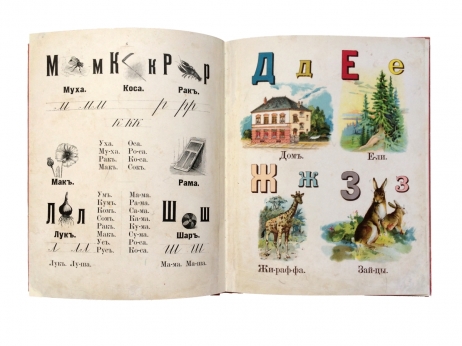 Кроме непосредственно азбуки издание содержит: стихи и песенки, маленькие рассказы (в т.ч. легендарный бестселлер «Репка»), указания «как нужно держать перо», задачки и загадки, басни, цифры и числа и проч. Редкость, как и все азбуки старого времени. Книга представляет историческую и культурную ценность!
