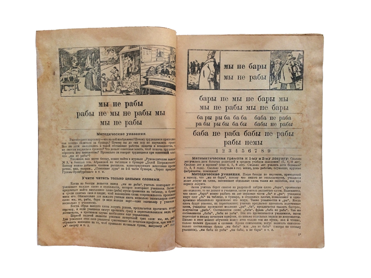 Книга на своем примере дает понять как на заре советской власти боролись с безграмотностью среди взрослого населения. Как была образована и получила развитие системы народного образования, бесплатного образования. По мнению Ленина, грамотность являлась важнейшим условием гражданского существования для отдельного индивида и для общества в целом: «Безграмотный человек стоит вне политики, его сначала надо научить азбуке. Без этого не может быть политики, без этого есть только слухи, сплетни, сказки, предрассудки, но не политика». Настоящим свидетельством плана по ликвидации неграмотности, а вместе с тем — освоению людьми передовой идеологии, является представленный букварь, редко встречающийся на книжном рынке. Книга представляет историческую и культурную ценность!