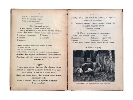 Иллюстрированный издательский картонаж. Блок расшатан. Некоторые страницы выпадают.