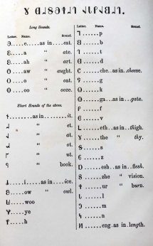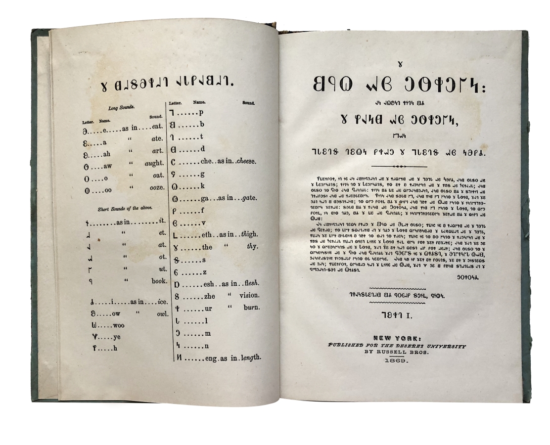 В 1869 году Книга Мормона была напечатана на новом алфавите Дезерета в двух разных изданиях. Одна из них была целой книгой для семейного использования и чтения; другая должна была состоять из трех частей, которые будут служить читателям для следования за первой и второй. Была опубликована только первая часть трехчастного издания. Алфавит Дезерет был орфографической реформой английского языка, которую продвигала Церковь Иисуса Христа Святых последних дней (мормоны) примерно между 1854 и 1875 годами.