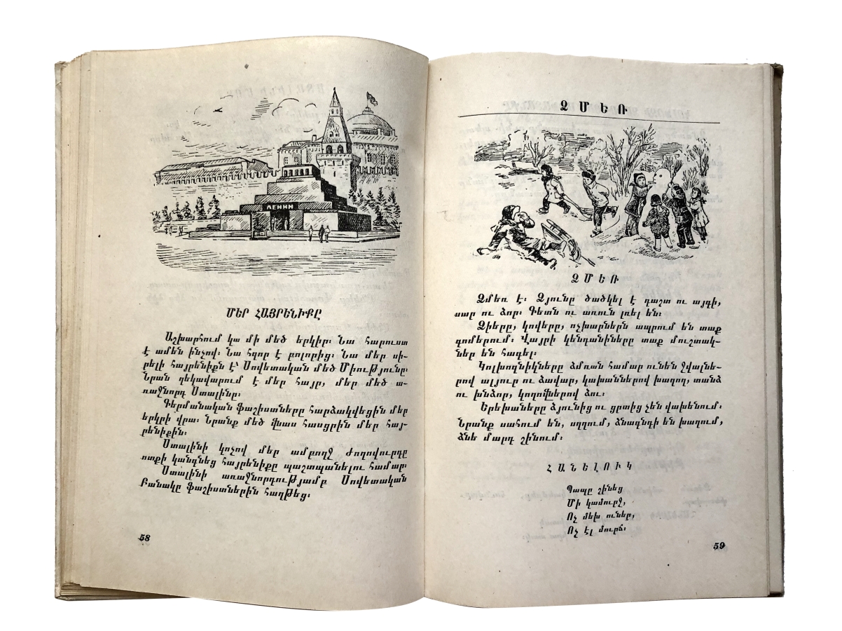 Вашему вниманию представляется букварь, который использовали большинство школьников 50-ых годов в Армении. Учебник для третьего класса русских школ. Как и большинство букварей все начинается с простых букв с картинками, которые постепенно переходят в слоги, слова, предложения и несложные тексты.
