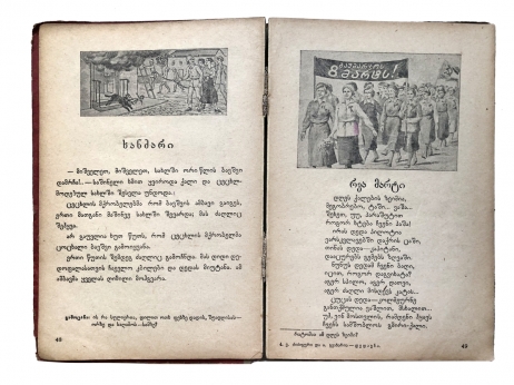 Вашему вниманию представляется букварь, который использовали большинство школьников годов в Грузии. Как и большинство букварей все начинается с простых букв с картинками, которые постепенно переходят в слоги, слова, предложения и несложные тексты. На каждой странице букваря — иллюстрация, отражающая дух эпохи.