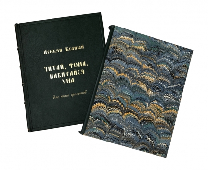 Обложка издательская. Цельнокожаная папка для книги с золотым тиснением. Футляр. Владельческие пометки на страницах.