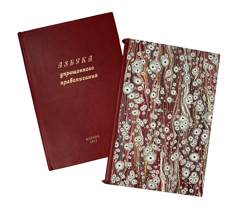 Обложка издательская. Цельнокожаная папка для книги с золотым тиснением. Футляр. Владельческие пометки на обложке.