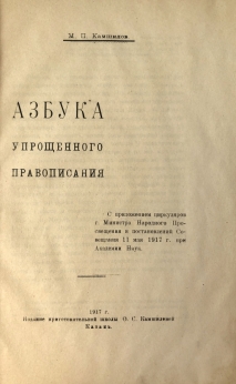 «Азбука упрощённого правописания» Камшилова является книжкой для обучения чтению и письму. Азбука занимает вторую половину книжки. В первой половине своей книги автор напечатал «копию циркуляра министра народного просвещения от 17 мая 1917 года за №5456», главные «из постановлений орфографической подкомиссии» 1912 г. и два стихотворения, одно подписано Р. Н., а другое — М. К.