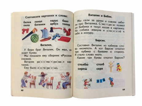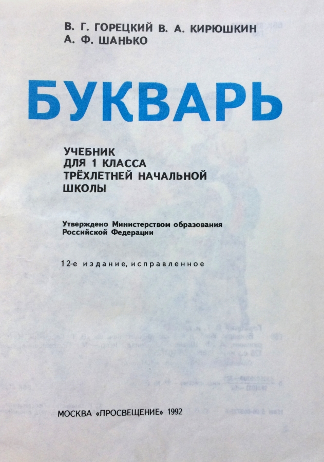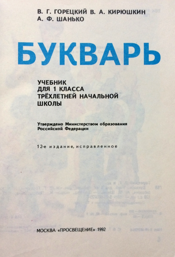 Учебник для 1 класса начальной школы. Почти каждый советский мальчишка и девчонка начинали нелегкий путь познаний именно с этой книги. Букварь — это книга, которая первая давала советским детям образование, любовь к Родине, близким. Активная совместная деятельность трех ученых — В. Г. Горецкого, В. А. Кирюшкина и А. Ф. Шанько привела к тому, что в 1969 году был создан, а в 1971 году вышел в типографском варианте экспериментальный учебник «Букварь». Решением Коллегии Министерства просвещения в 1980 году Букварь был утвержден в качестве стабильного учебника.