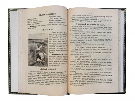 Первая после букваря книга для классного чтения в начальных училищах. С оригинальными рисунками и снимками с картин выдающихся художников, с вопросами для повторения статей, с материалом для домашнего чтения и с отделами: грамматические упражнения, рисование (американская система обучения) и практические задачи. Составлен кружком московских преподавателей под редакцией А. П. Стебелева. Книга представляет историческую и культурную ценность.