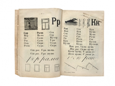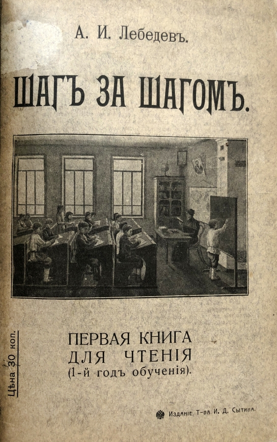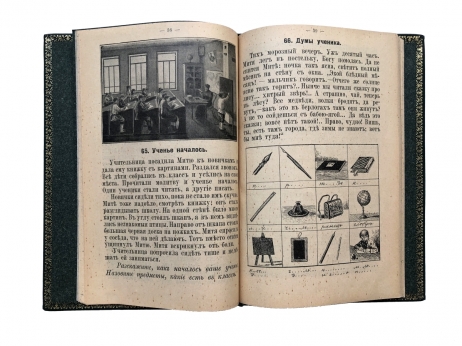 Букварь для обучения чтению и письму. Главная задача этго букваря — выучить ребенка грамоте и перейти к связному самостоятельному чтению. Авторы пытались придать книге вид, способствующий наилучшему усвоению грамоты. Книга представляет историческую и культурную ценность.