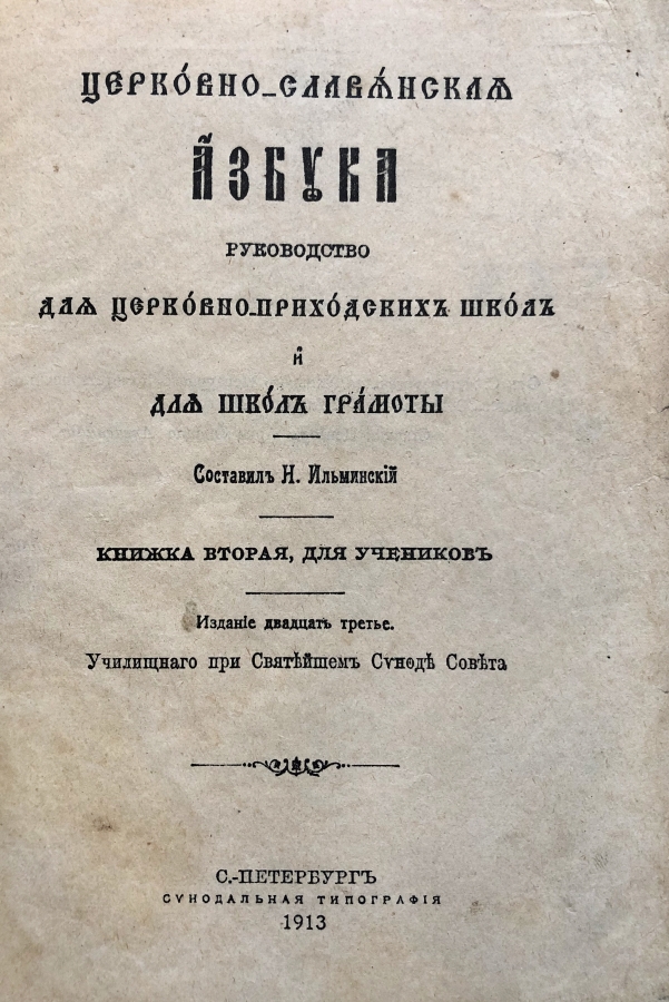 Церковнославянская азбука — руководство для учеников церковно-приходских школ. В азбуку входят следующие разделы: церковнославянская азбука, молитвы, Евангельские чтения и упражнения для письма. Издание предназначено для широкой аудитории читателей, желающих учить церковнославянский язык. Книга представляет историческую и культурную ценность.