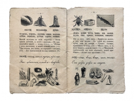 Наглядная азбука для обучения и самообучения грамоте по наглядно-звуковому способу. Азбука содержит всё, что необходимо для обучения грамоте: от каллиграфии до простых и поучительных текстов. Книга представляет историческую и культурную ценность.