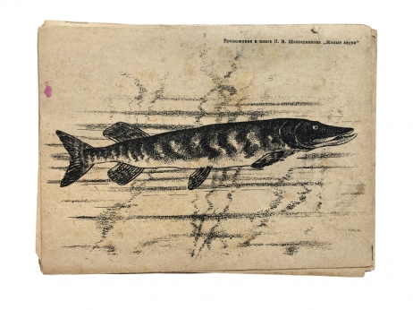 Издательская папка. Некоторые иллюстрации раскрашены цветным карандашом. Плюс приложение оригинальных рисунков к книге И. Н. Шапошникова «Живые звуки».