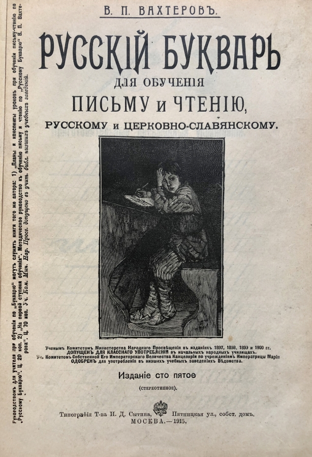 Василий Порфирьевич Вахтеров (1853-1924) — российский педагог, ученый, методист начальной школы, деятель народного образования. В. П. Вахтеров широко известен как автор книг для первоначального обучения. В дореволюционное время его учебные книги для начальной школы пользовались огромной популярностью и вытесняли уже существующие в то время учебники таких выдающихся педагогов, как Н. Ф. Бунаков, Д. И. Тихомиров, К. Д. Ушинский. Как отмечают исследователи творчества педагога, книги В. П. Вахтерова были самыми распространенными из всех русских учебников. Так, изданный им впервые в 1898 г. «Русский букварь» выдержал более 130 изданий. Книга представляет историческую и культурную ценность.
