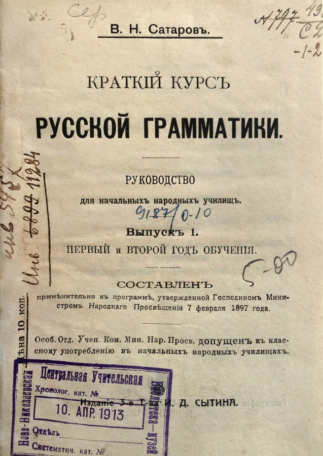 Практическое пособие В. Н. Сатарова предназначено для тех, кто знает азбуку. Содержание учебника соотнесено со способностями учащихся первого года обучения. Учебное пособие состоит из заданий, охватывающих три раздела изучения русского языка. В их число входят задания на практическое освоение вопросов, касающихся орфографии, состава слов, их частеречной принадлежности. Также в учебнике даются краткие сведения из области синтаксиса. Книга представляет историческую и культурную ценность.