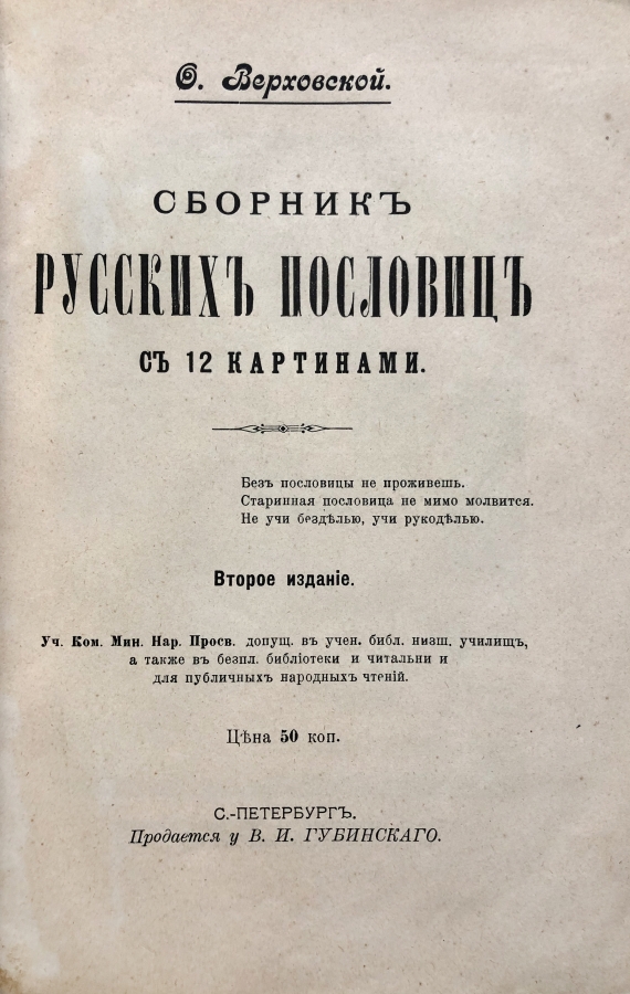 Сборник русских пословиц, в которых выразилась народная премудрость, жизненный опыт и глубокое знание человеческого естества. Вышли эти пословицы из недр души народа. Оглавление: Мировоззрение русского народа, Человек и его хорошие качества, Дурные качества человека, Родственные отношения, Жизнь, Имущество, Деятельность, Торговля, Наука, Время, Природа, Загадки. Книга представляет историческую и культурную ценность.