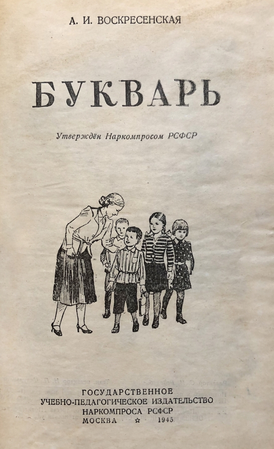Букварь педагога и методиста по русскому языку А. И. Воскресенской. Букварь — это книга, которая первая давала советским детям образование, любовь к Родине, близким. Прекрасное пособие для обучения чтению ребёнка до школы. Очень хорошо построена методика порядка изучения букв, ребенок легко подключается к изучению чтения. Александра Ильинична Воскресенская — советский педагог и методист по русскому языку в начальной школе, автор букварей для сельских школьников. Член-корреспондент Академии педагогических наук РСФСР (1950), заслуженный учитель школы РСФСР. Книга военного времени!