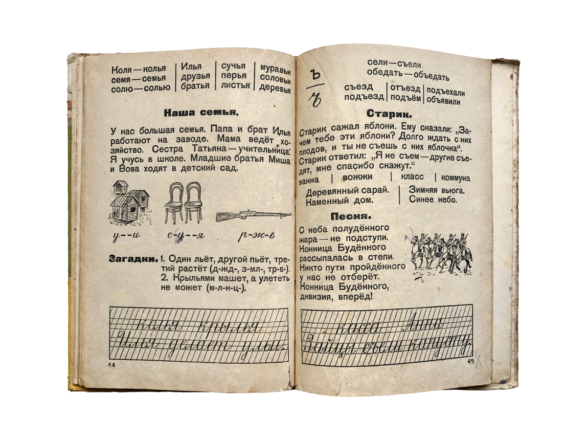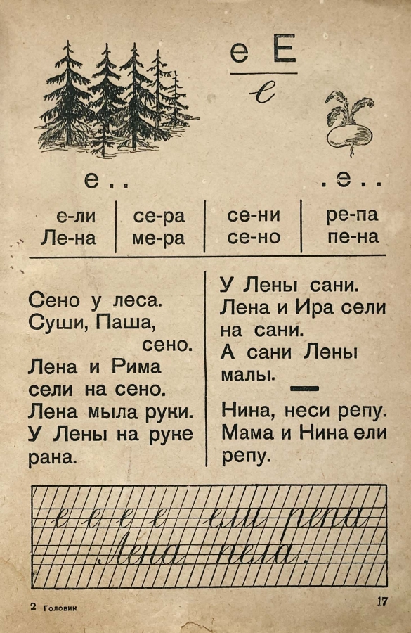 Труд заслуженного учителя школы РСФСР (1943) Н. М. Головина был востребован на протяжении 10 лет и выдержал 8 изданий. В букваре содержались различные задания: чтение по слогам, прописи, знакомство с короткими рассказами о детских занятиях и стихотворениями с политическим подтекстом и др. Простые и яркие иллюстрации демонстрировали ученикам примеры правильного поведения.