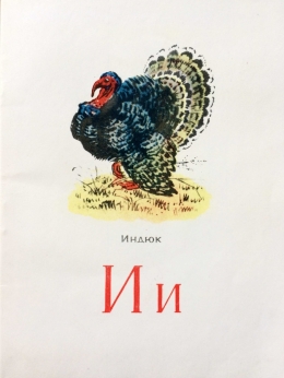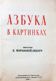 Азбука для самых маленьких, помогающая выучить буквы и научиться читать. На каждой странице находится буква и слово, начинающееся на эту букву с цветной картинкой. Художник Е.Морозова-Эккерт.