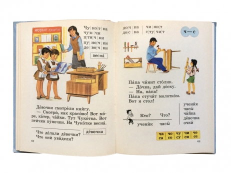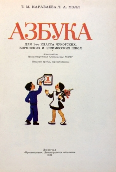 Пособие по русскому языку для чукотских, корякских, эскимосских, ительменских народов. Книга, по которой дети могли учиться читать и писать. Однако основная задача пособия состоит в том, чтобы начать формировать у детей любознательность, вызвать у ребенка стремление приобретать новые знания, развивать пытливый ум и усидчивость. На каждой странице букваря — иллюстрация, отражающая дух эпохи.