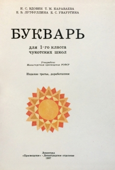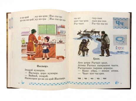 Азбука для 1-го класса чукотских школ. Книга, по которой дети могли учиться читать и писать. Однако основная задача пособия состоит в том, чтобы начать формировать у детей любознательность, вызвать у ребенка стремление приобретать новые знания, развивать пытливый ум и усидчивость. На каждой странице букваря — иллюстрация, отражающая дух эпохи.
