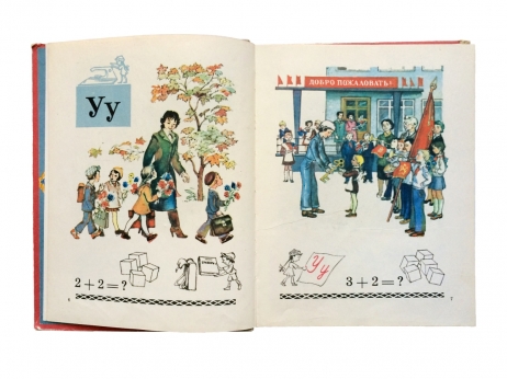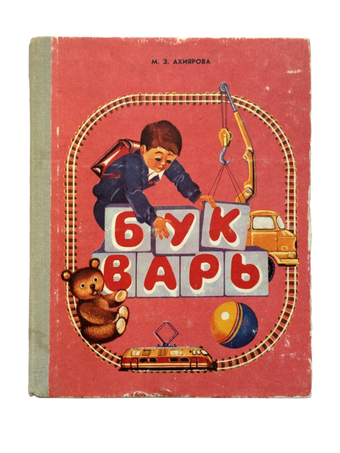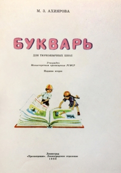 Пособие для тюркоязычных школ с русским языком обучения. Книга, по которой дети могли учиться читать и писать. Однако основная задача пособия состоит в том, чтобы начать формировать у детей любознательность, вызвать у ребенка стремление приобретать новые знания, развивать пытливый ум и усидчивость. На каждой странице букваря — иллюстрация, отражающая дух эпохи.