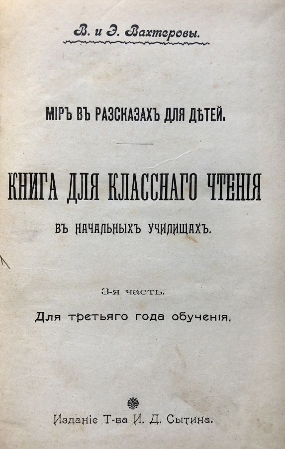 "Мир в рассказах для детей" — вторая после букваря книга для классного чтения в начальных училищах. В. П. Вахтеров широко известен как автор книг для первоначального обучения. В дореволюционное время его учебные книги для начальной школы пользовались огромной популярностью и вытесняли уже существующие в то время учебники. Как отмечают исследователи творчества педагога, книги В. П. Вахтерова были самыми распространенными из всех русских учебников. Так, изданный им впервые в 1898 г. «Русский букварь» выдержал более 130 изданий. В первые годы строительства советской школы (1918-1925) учебные книги В. П. Вахтерова рекомендовались Наркомпросом как самые лучшие. По его книгам для чтения не одно молодое поколение усвоило грамоту и приобщилось к русской культуре. Книга представляет историческую и культурную ценность!